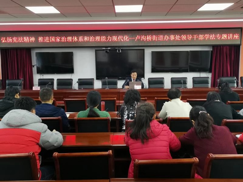 杨鸿飞主任于2019年11月27日上午,在丰台区卢沟桥街道办事处为领导干部学法作专题讲座。